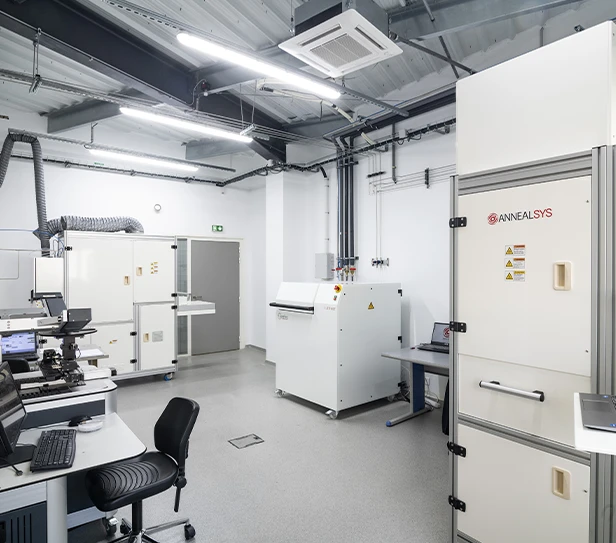 Forte de 20 ans d’expérience, notre équipe de chercheurs titulaires d’un doctorat a développé et optimisé de nombreux procédés RTP, ALD et CVD. Grâce à son laboratoire d’application et de R&D, Annealsys propose des services de développement et de maintenance de procédés. Nous pouvons réaliser des procédés RTP, CVD et ALD selon les spécifications de nos clients ou établir des partenariats pour le développement de nouveaux procédés.